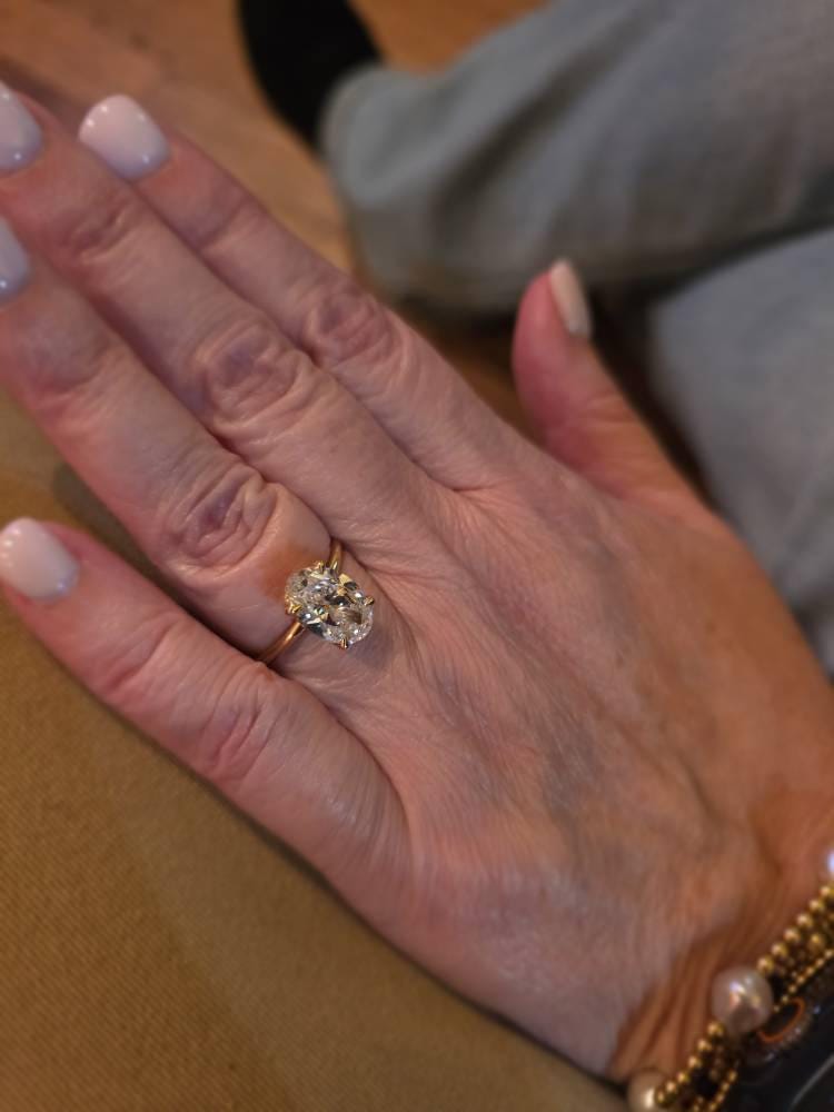 3 Carat Oval Lab Grown Diamond Hidden Halo Engagement Ring