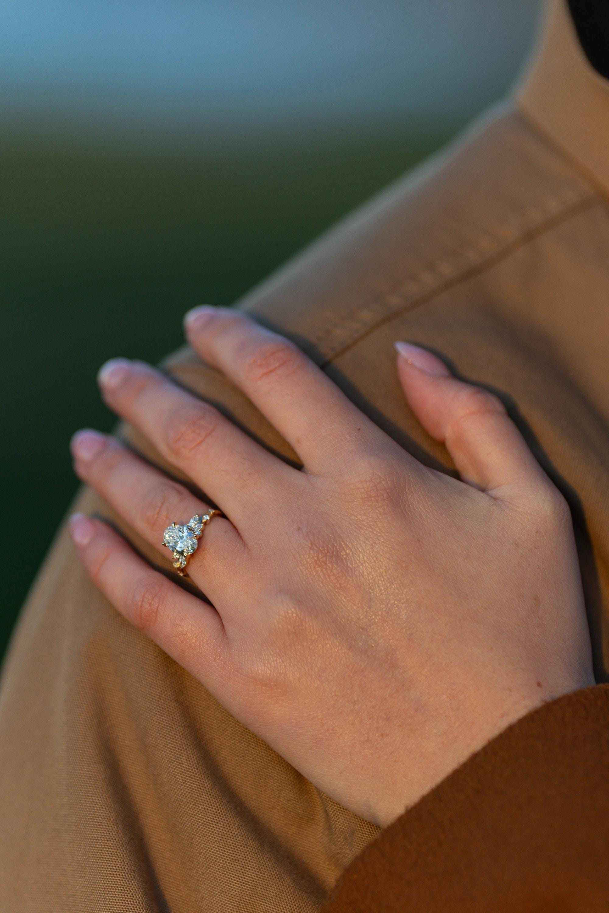 2 Carat Oval Cut Lab Grown Diamond Nature Inspired Engagement Ring