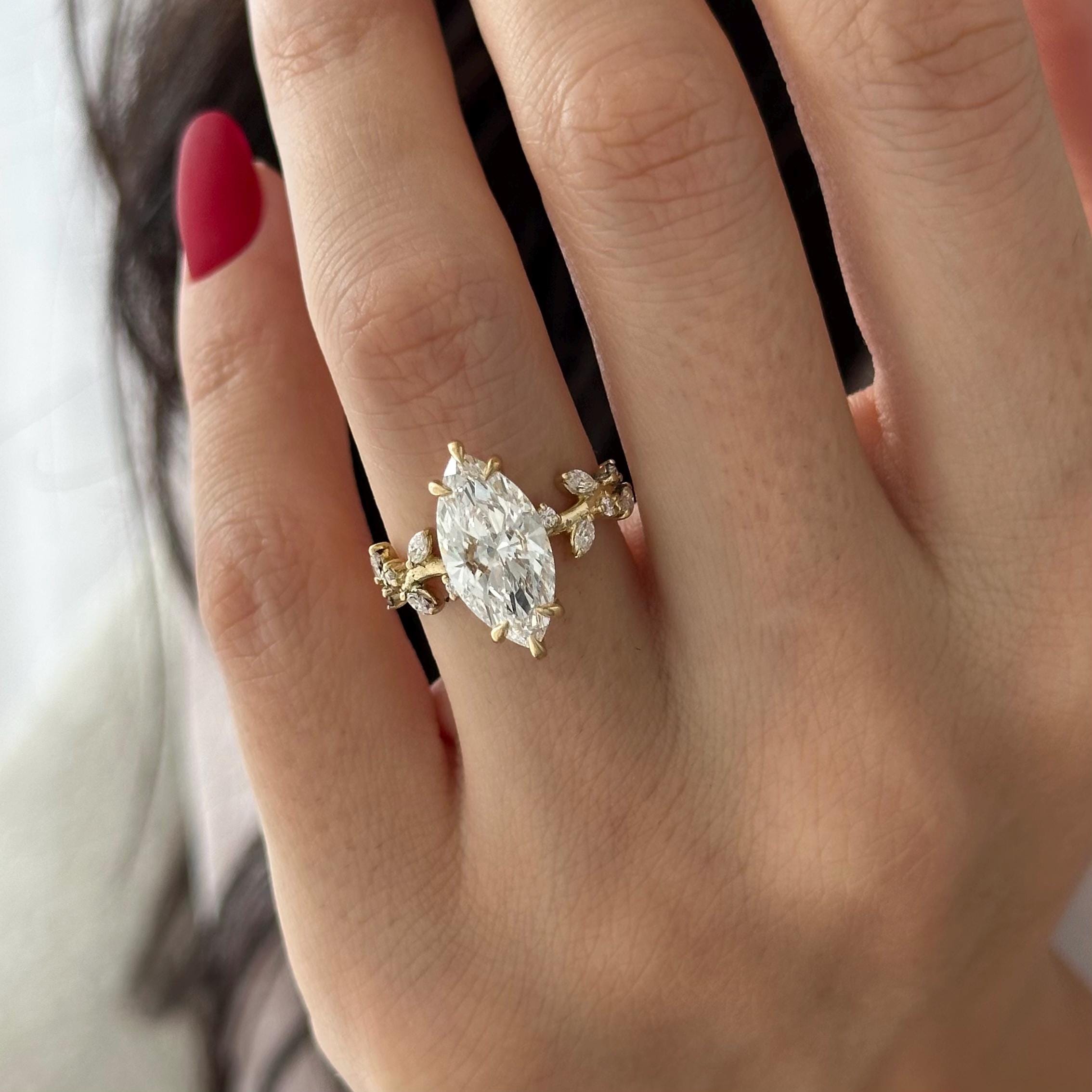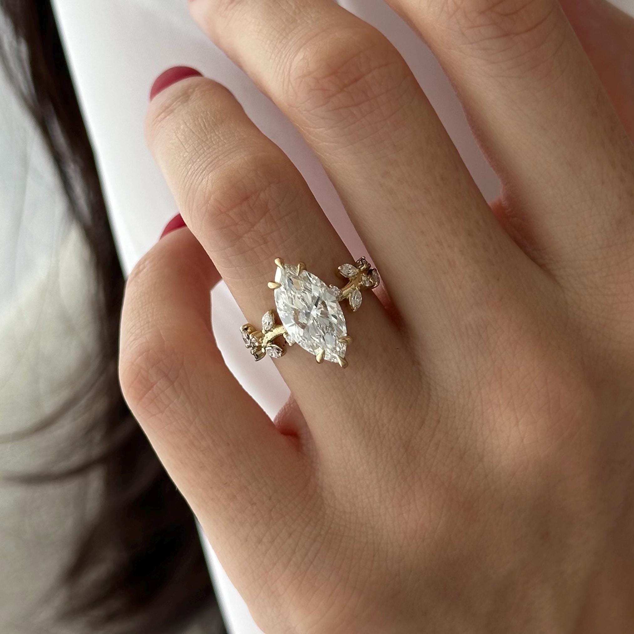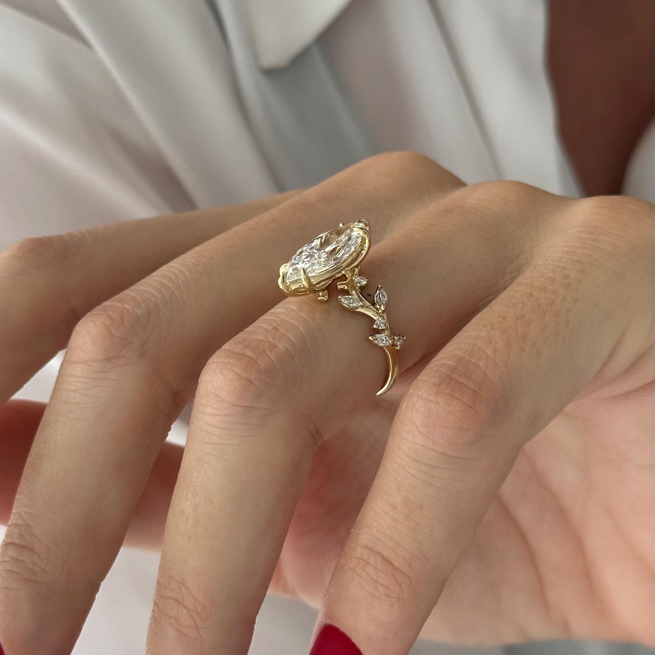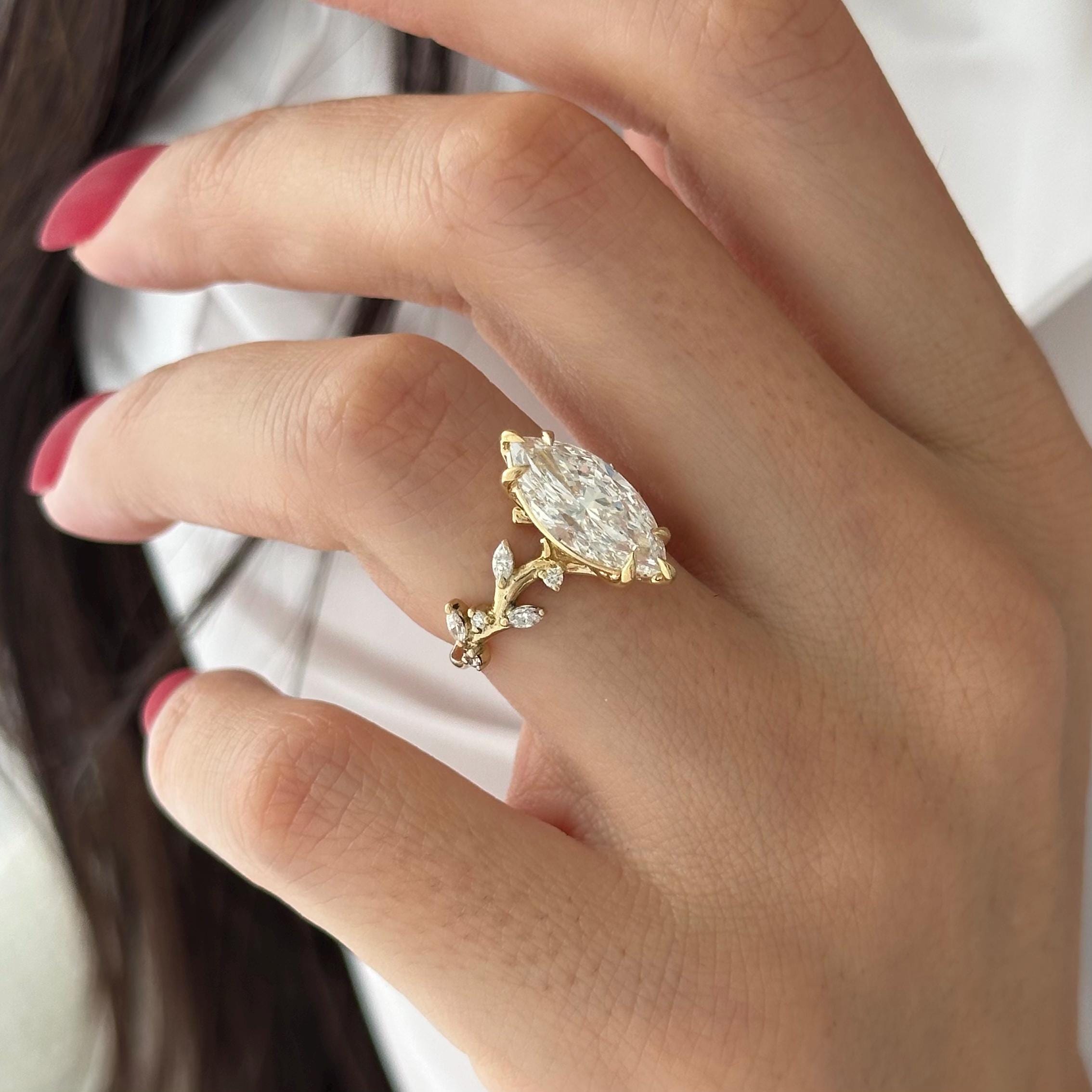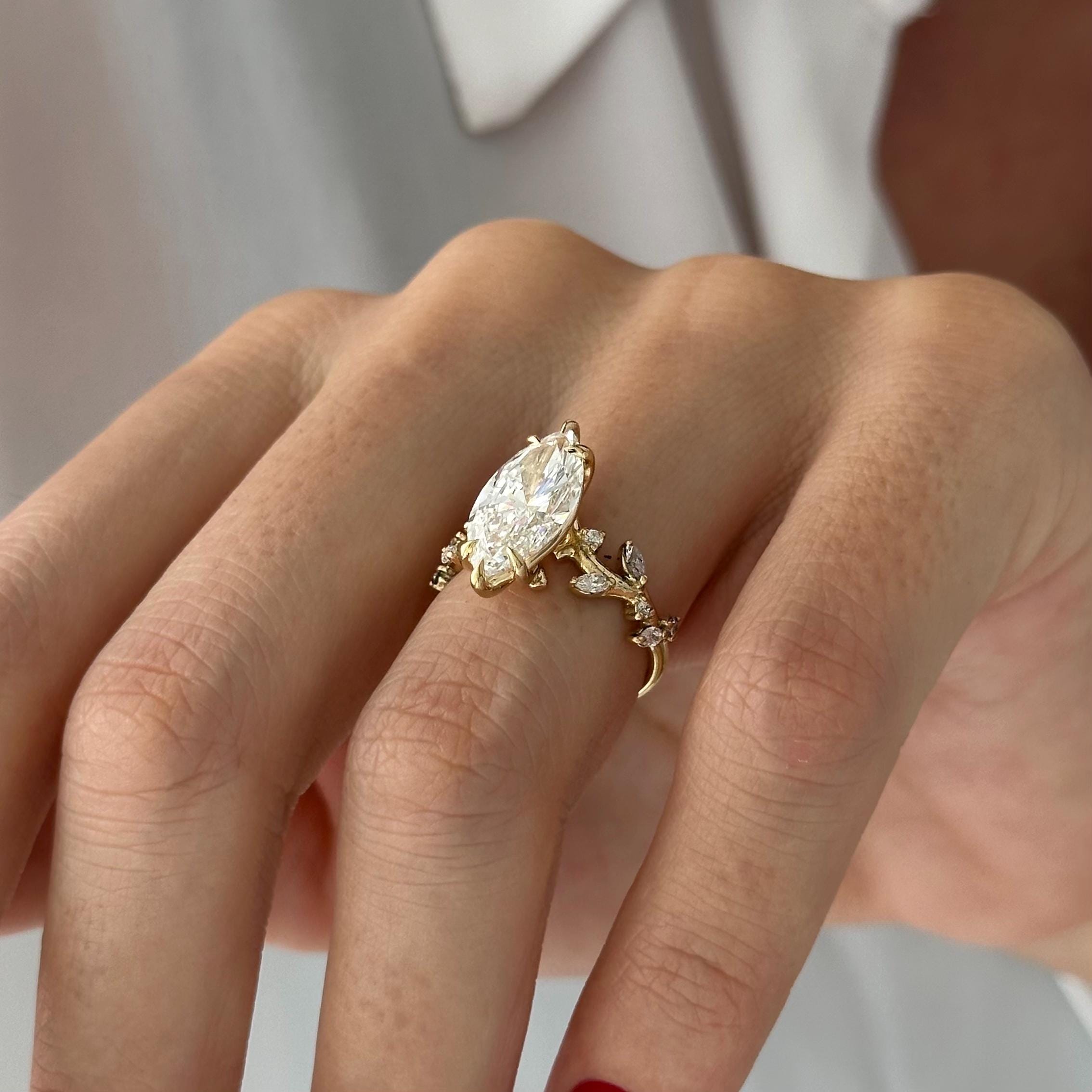 3 Carat Marquise Cut Lab Grown Diamond Nature Inspired Engagement Ring