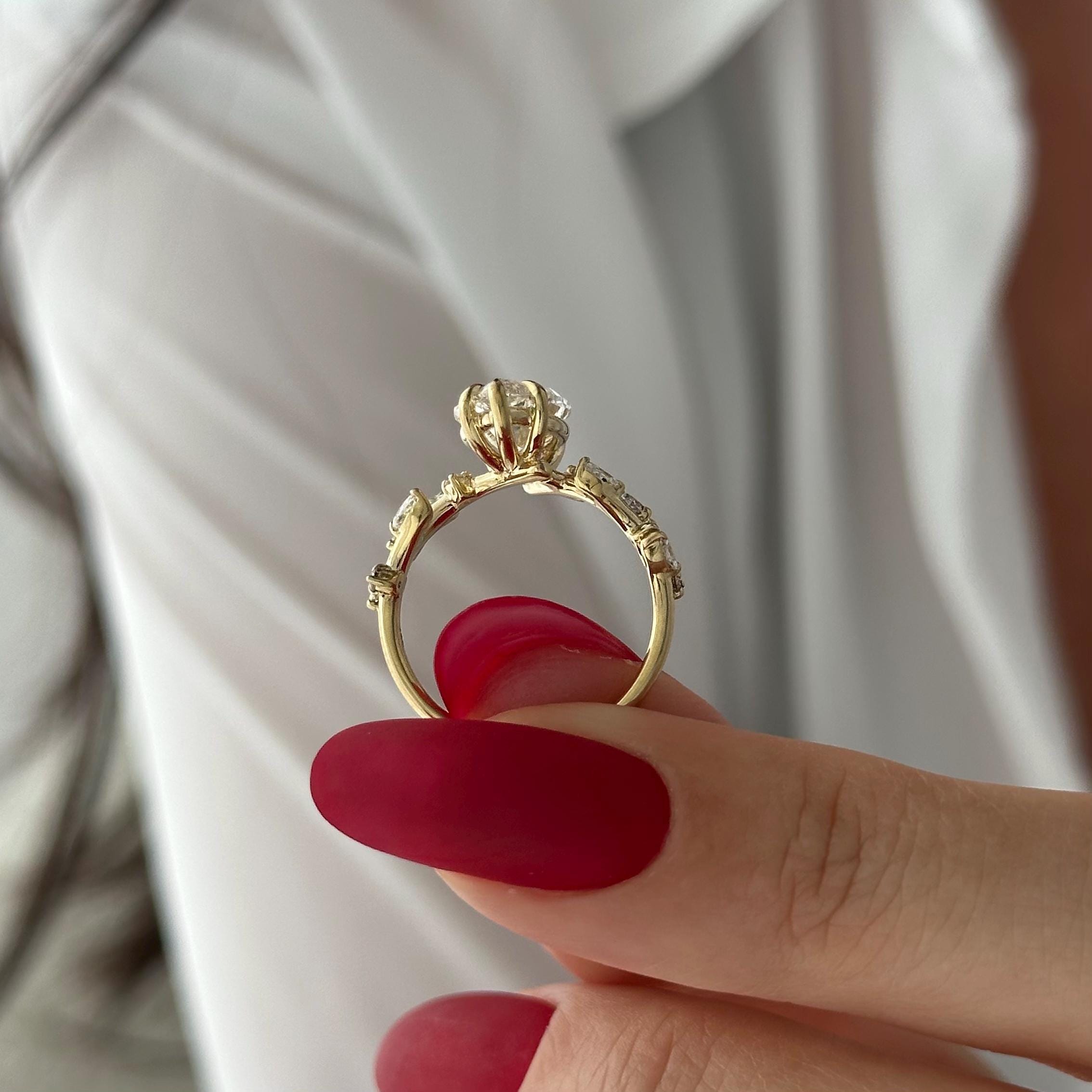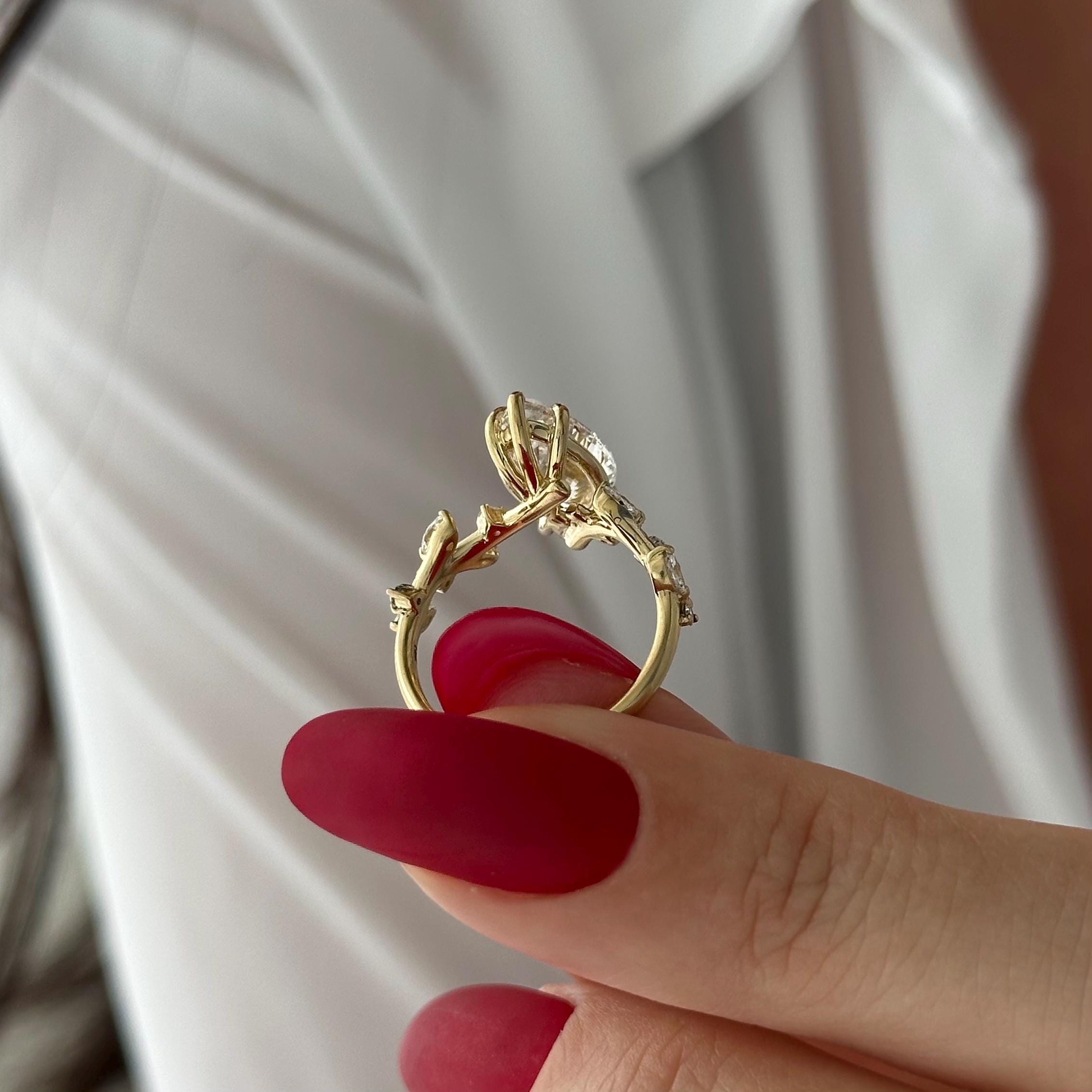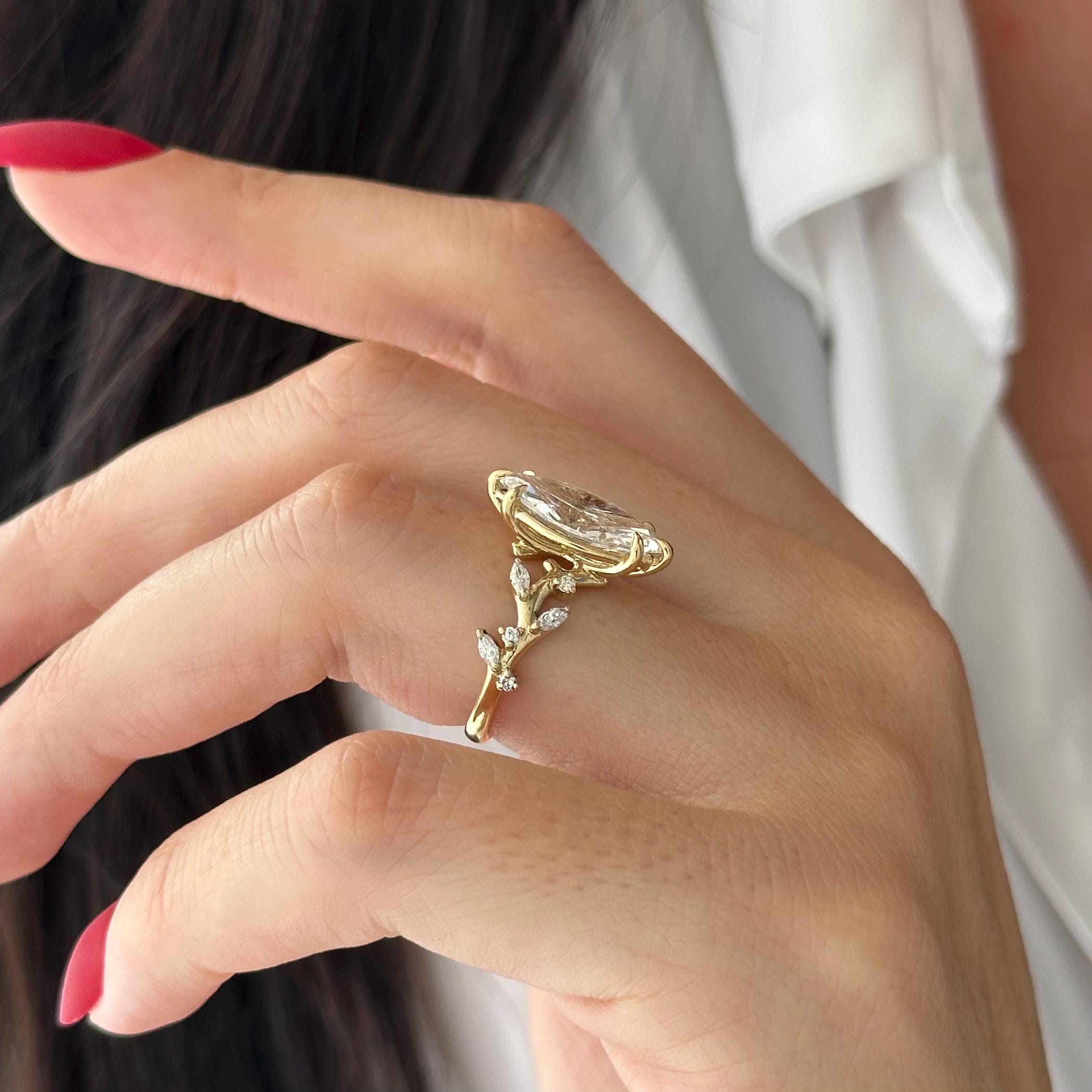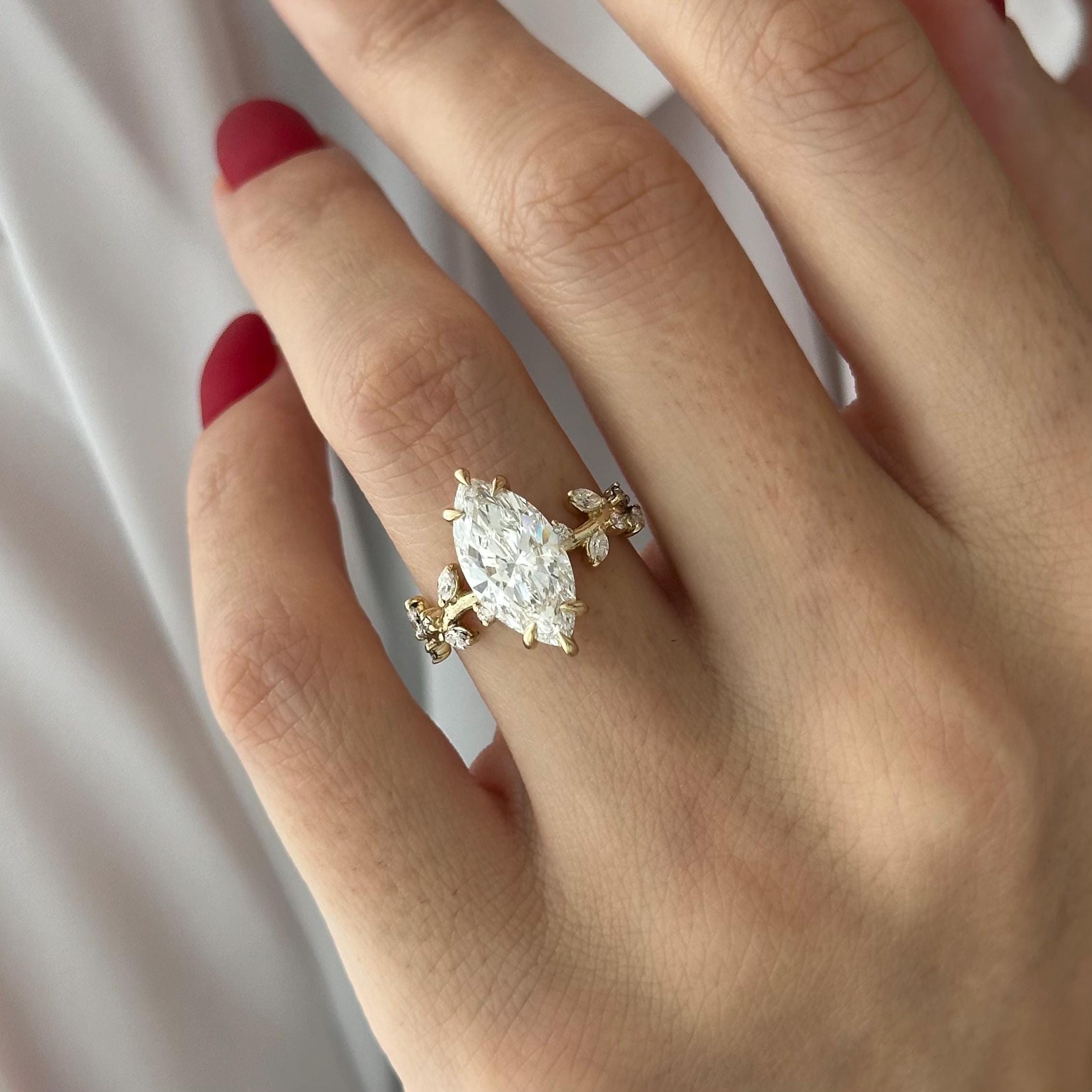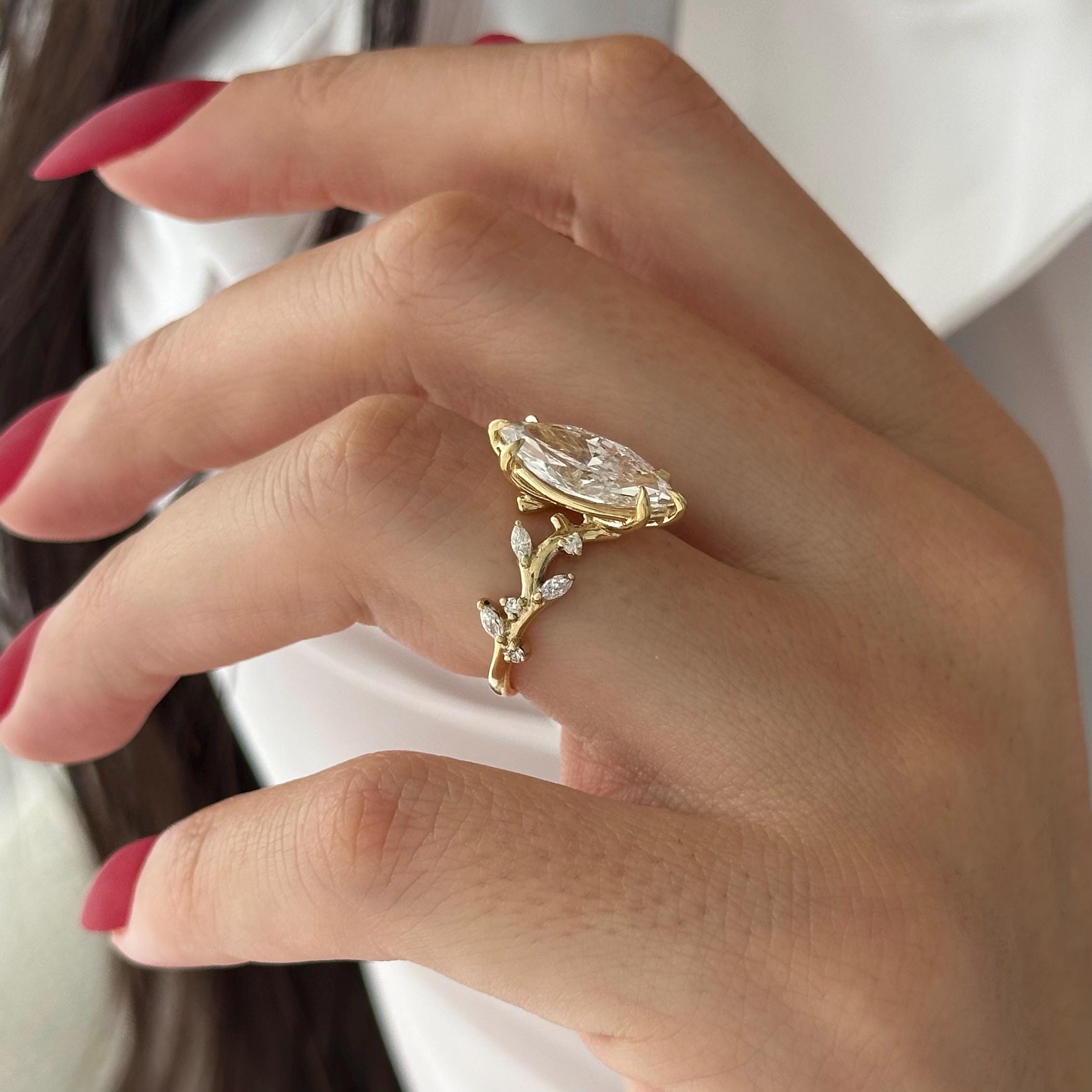 3 Carat Marquise Cut Lab Grown Diamond Nature Inspired Engagement Ring