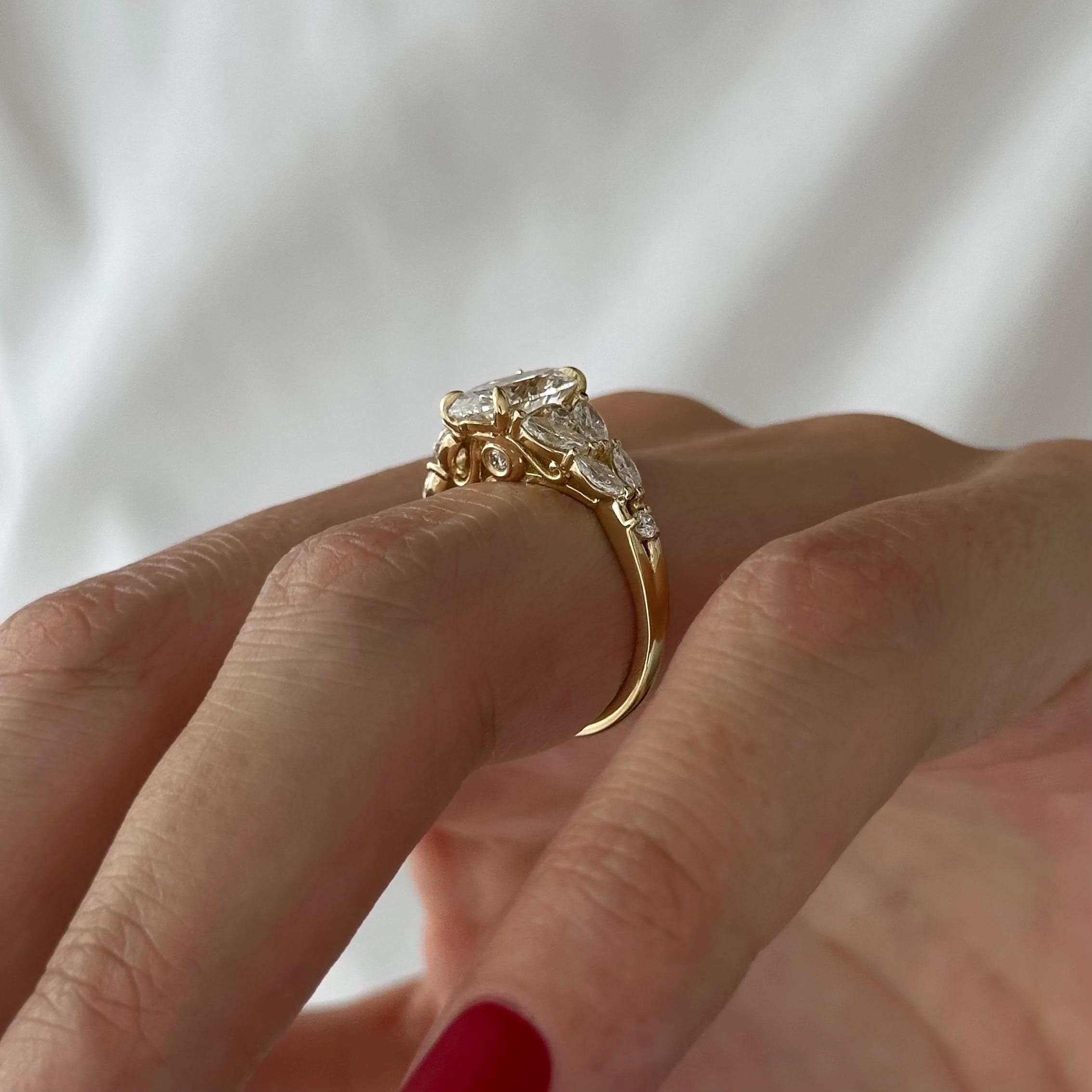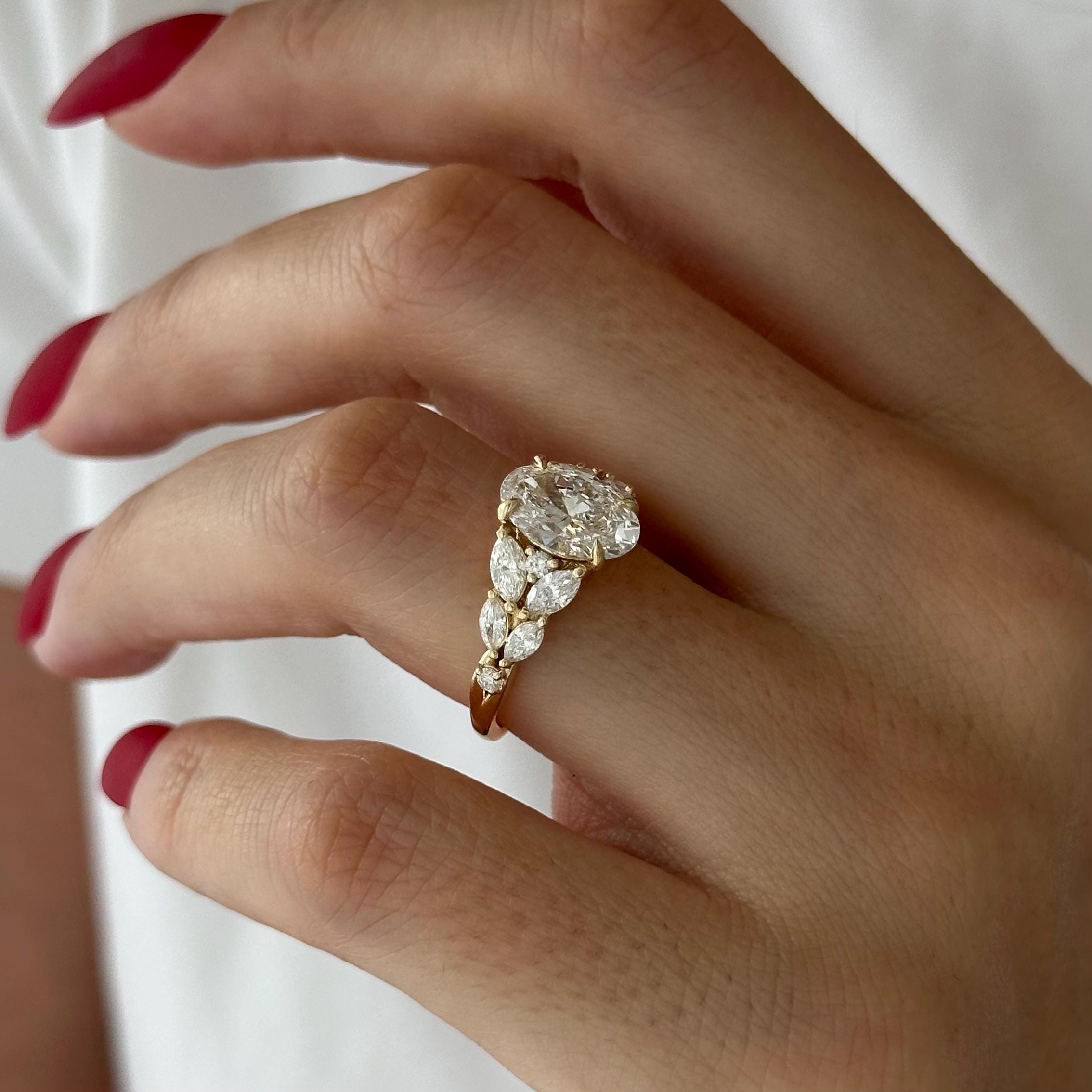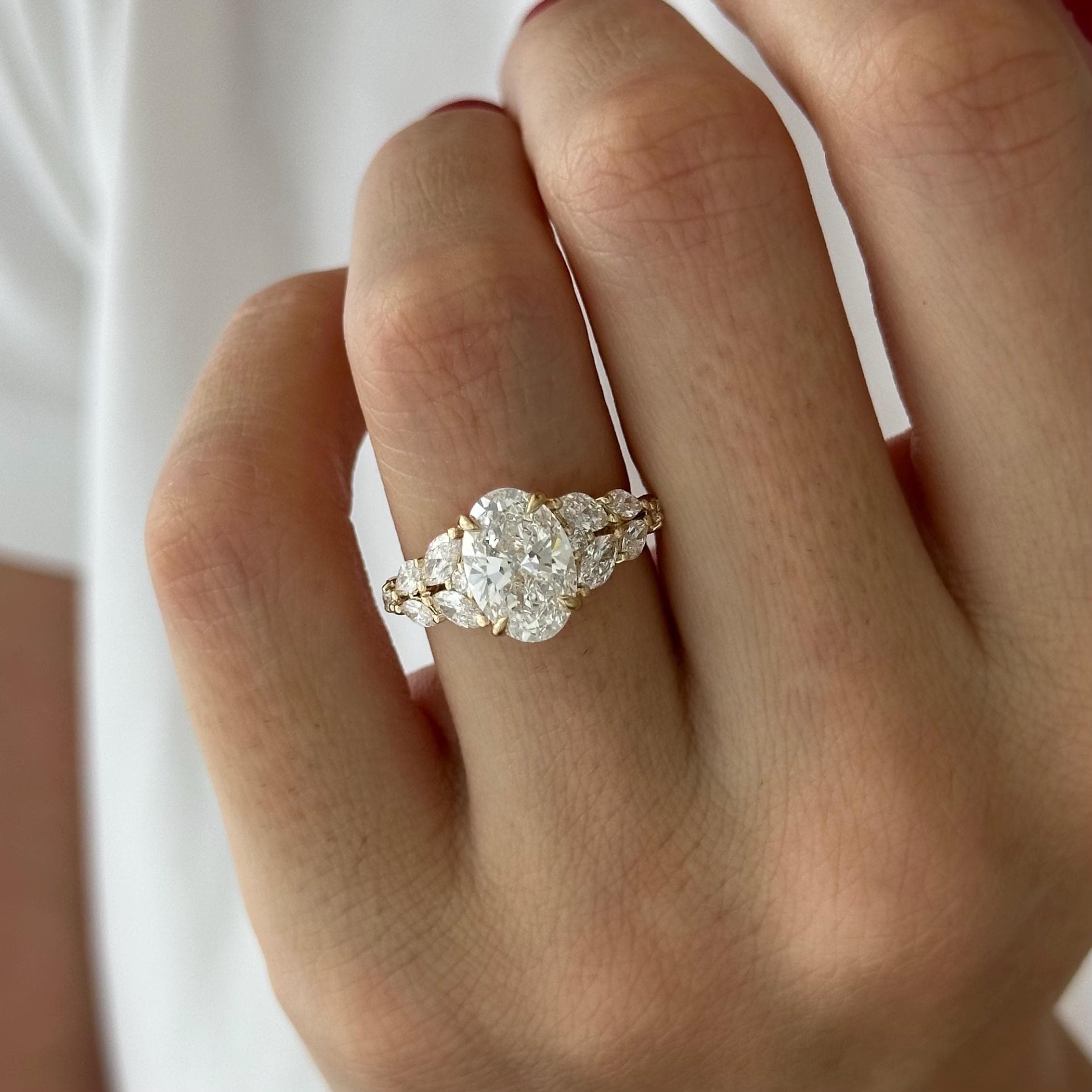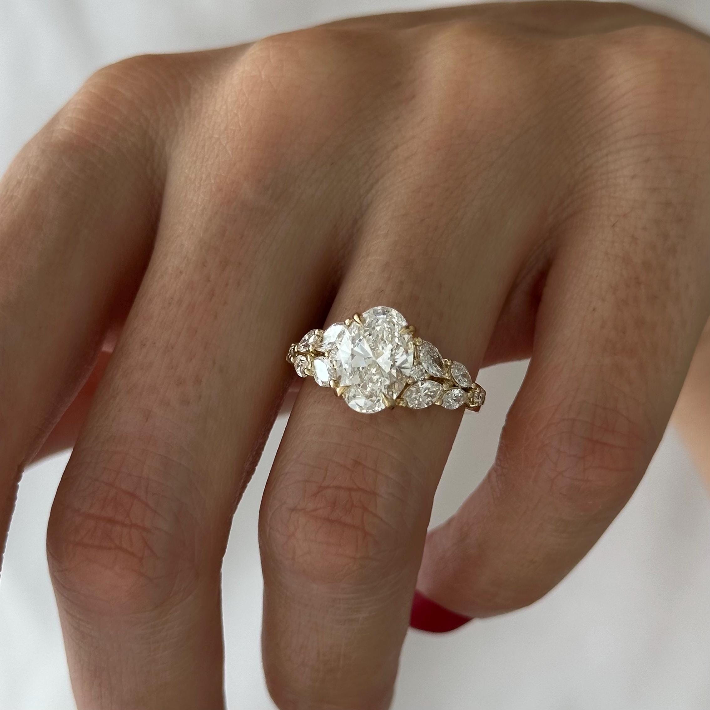 2 Carat Oval Lab Grown Diamond Nature Inspired Engagement Ring