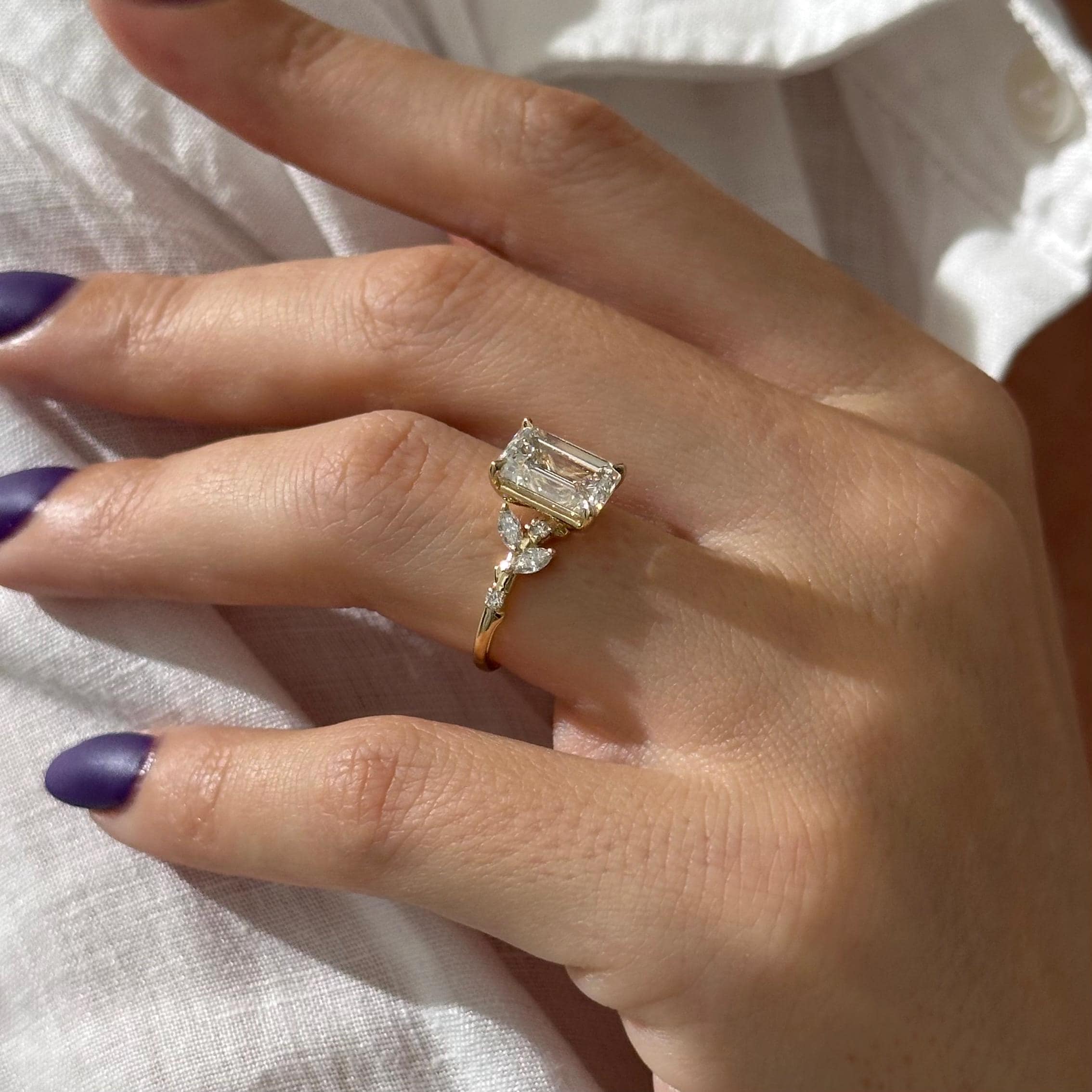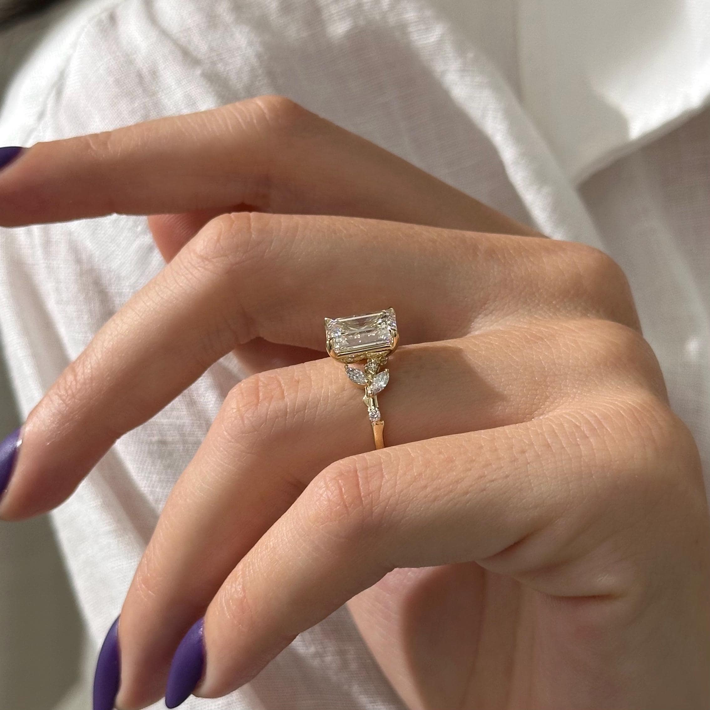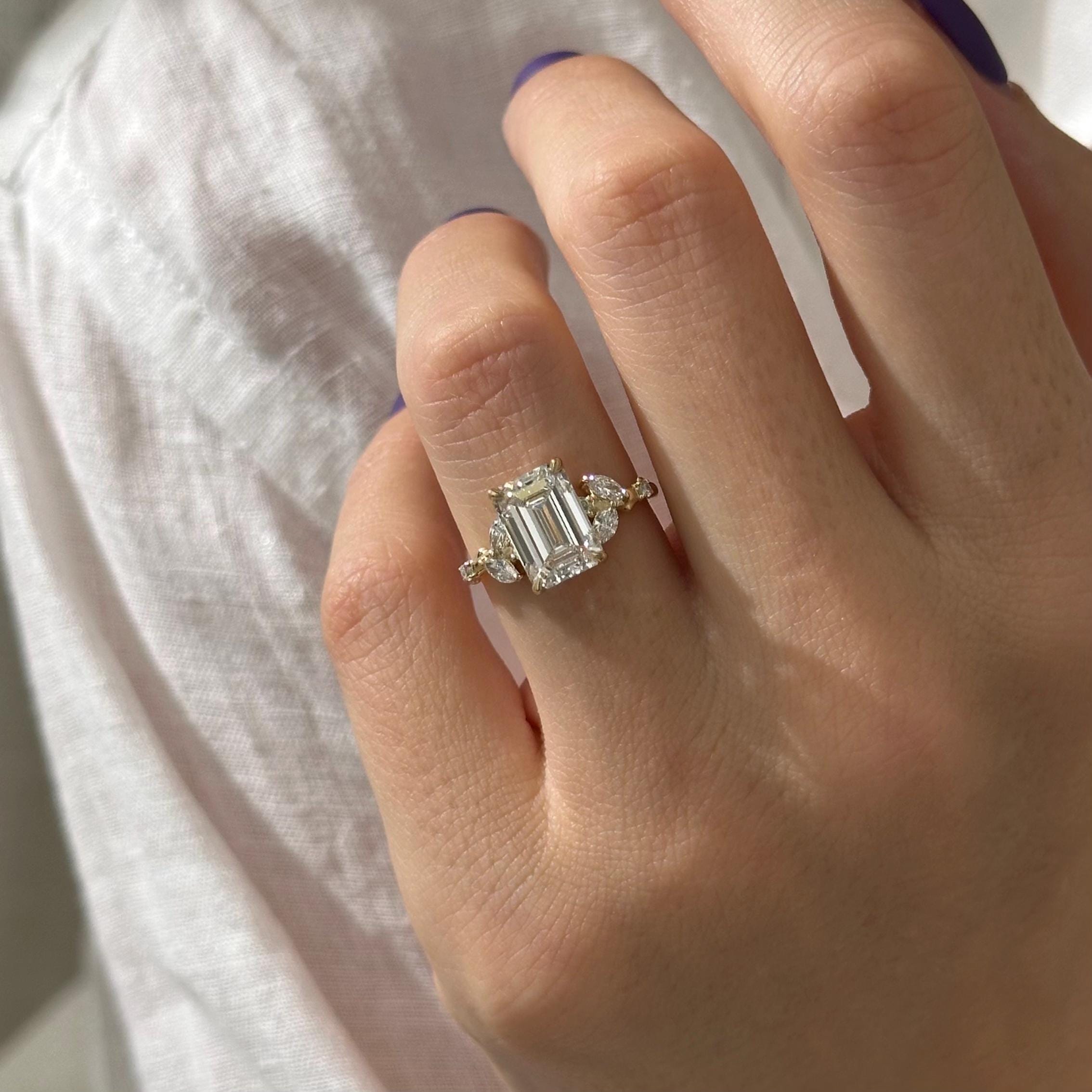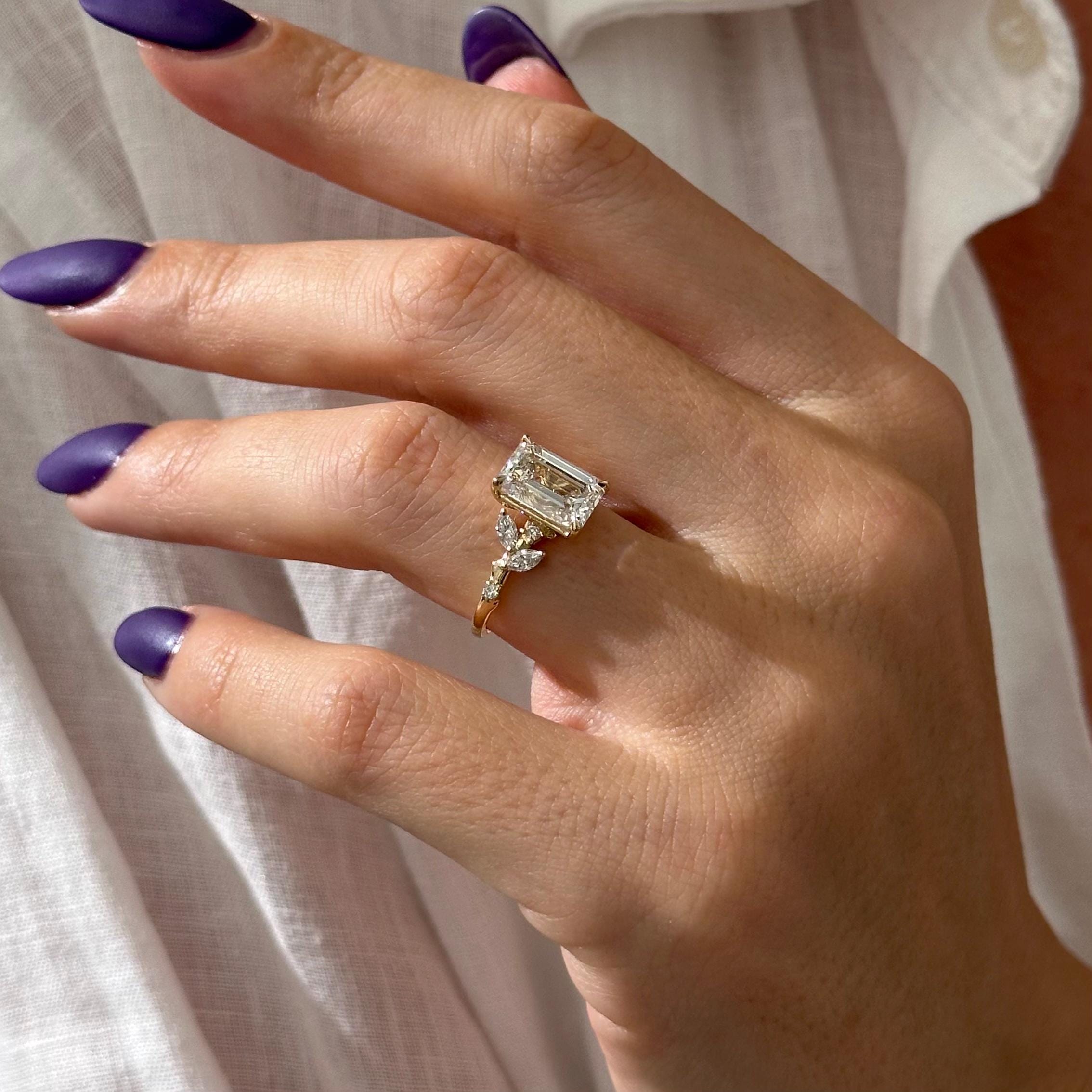 3 Carat Emerald Cut Lab Grown Diamond Nature Inspired Engagement Ring