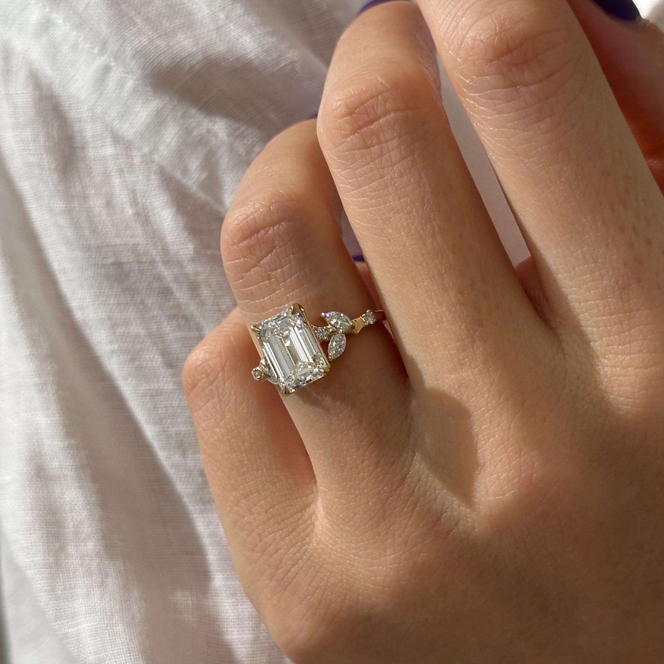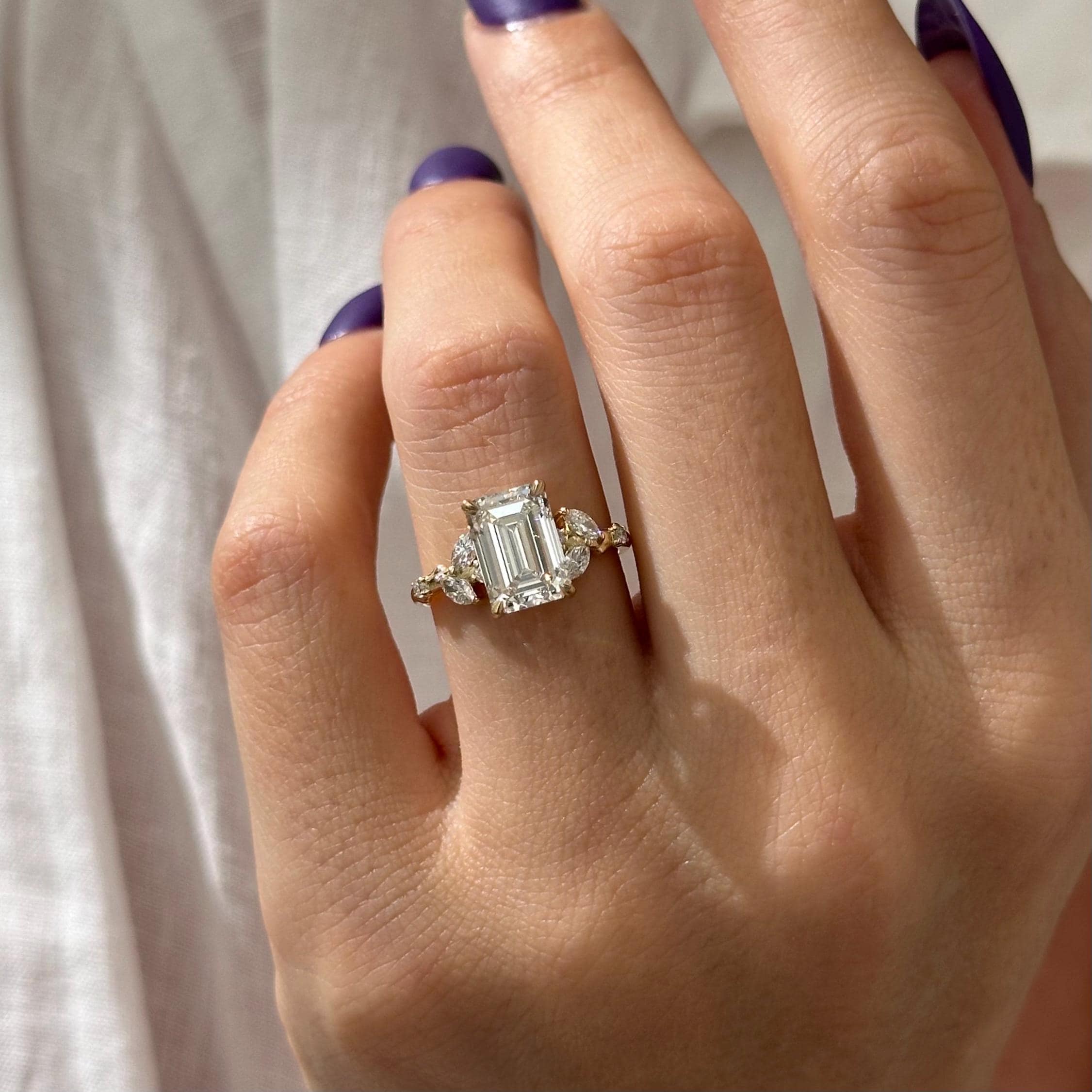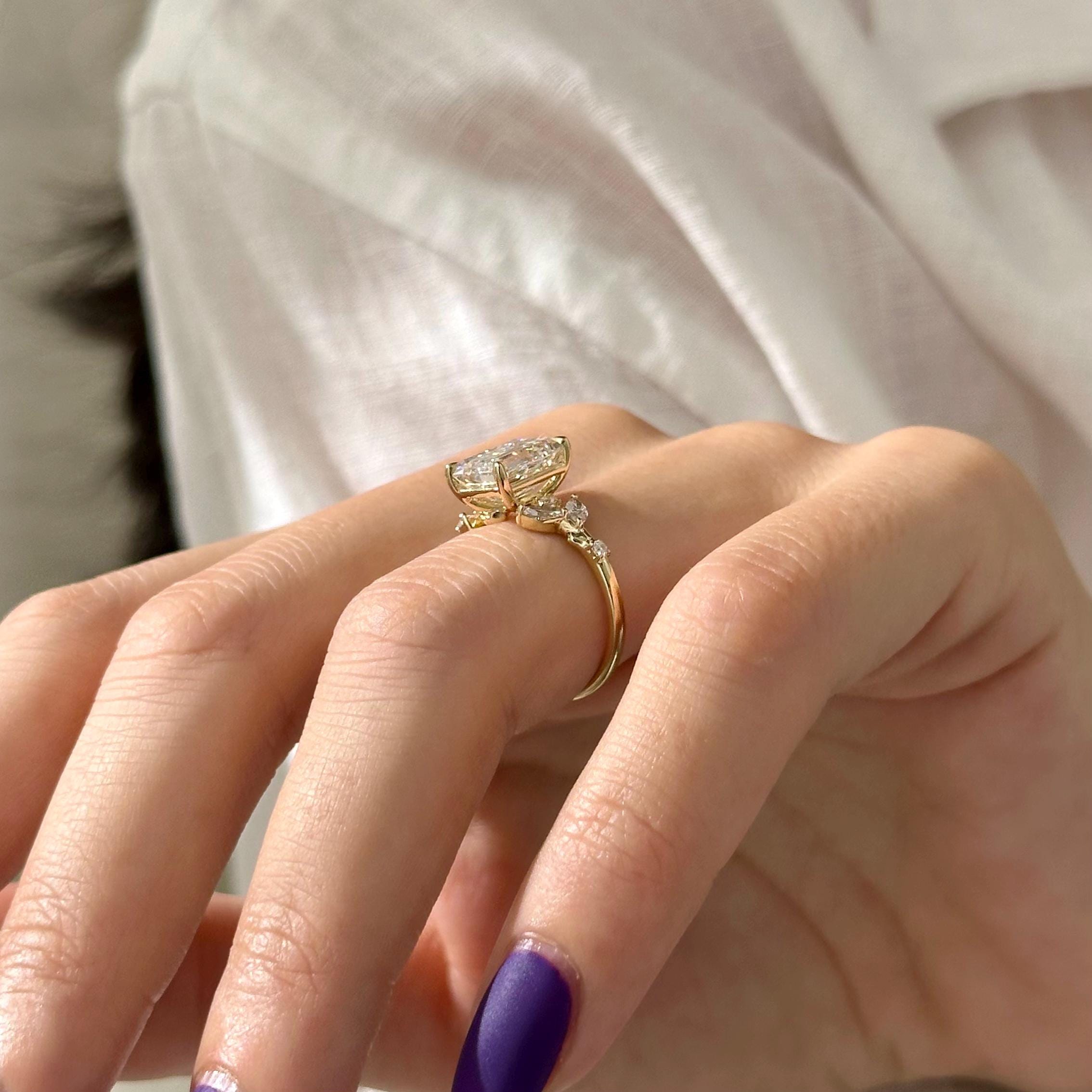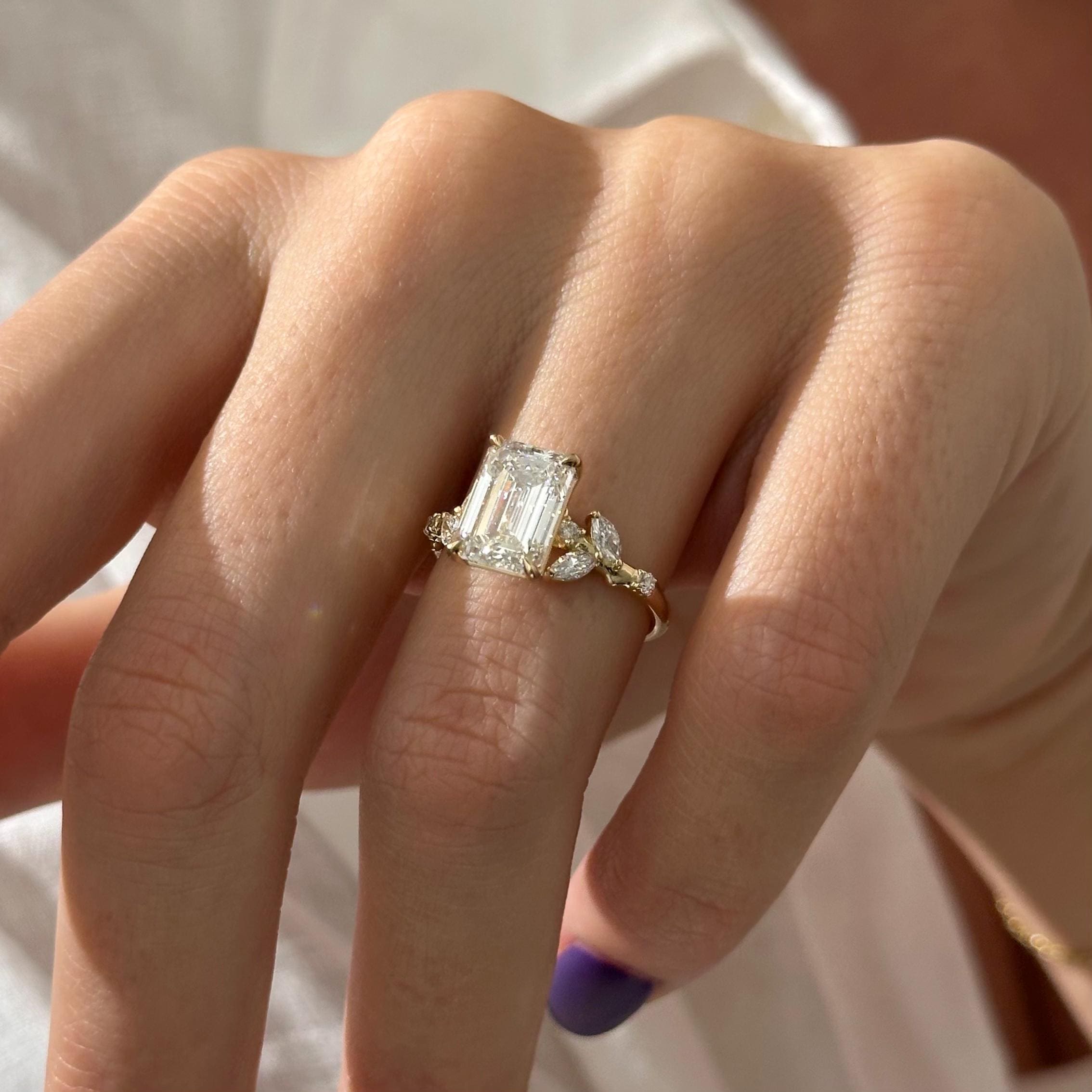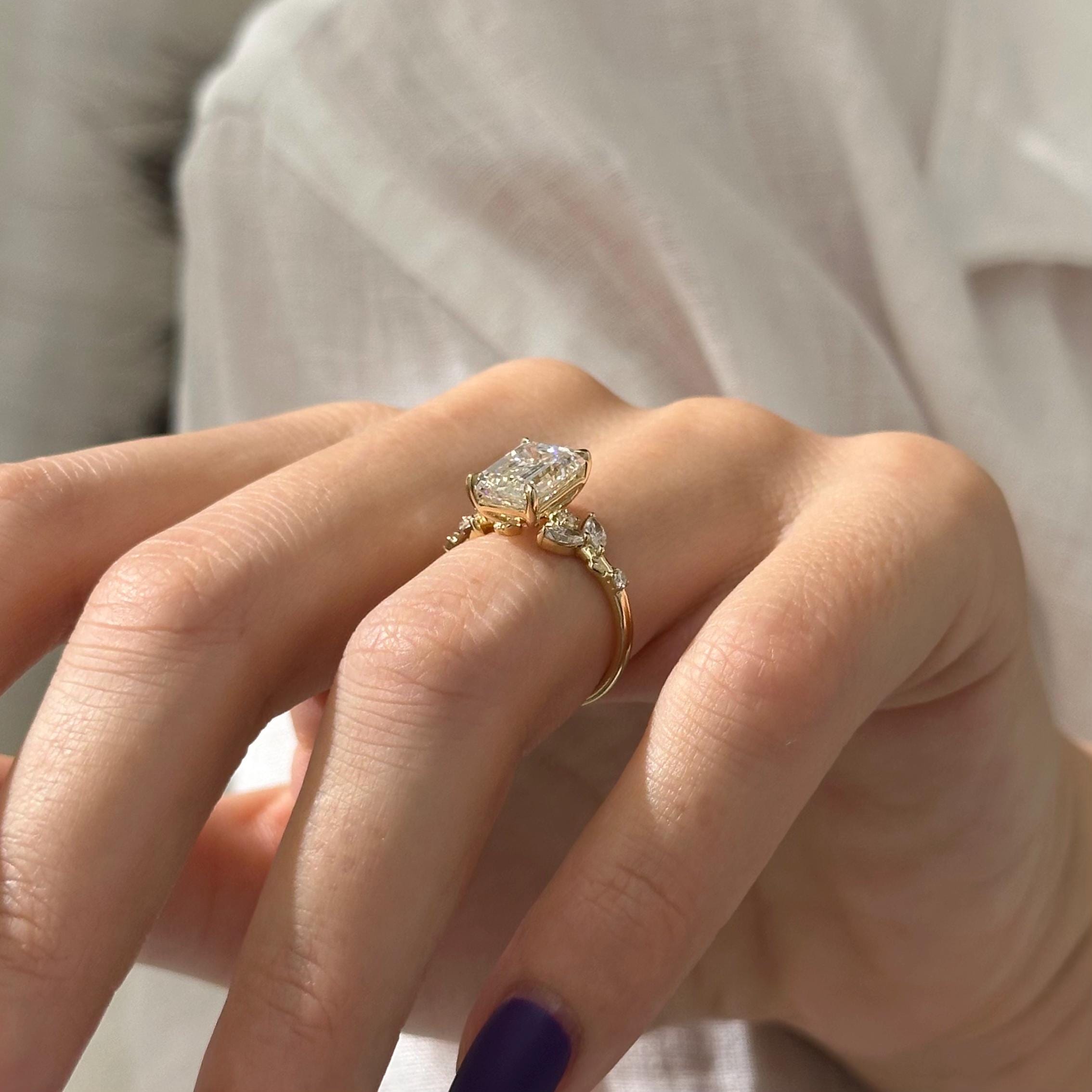 3 Carat Emerald Cut Lab Grown Diamond Nature Inspired Engagement Ring